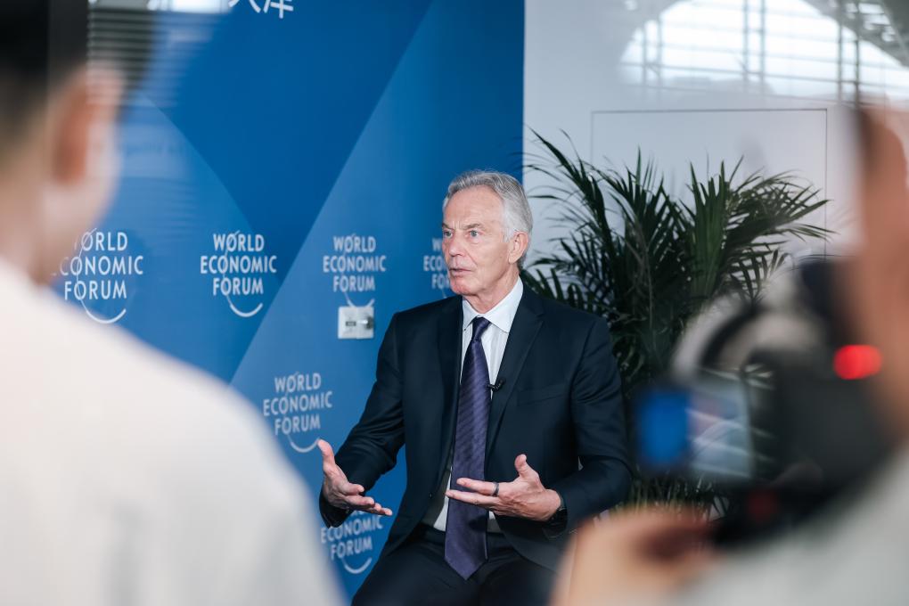 6月24日,英国前首相托尼·布莱尔在参加世界经济论坛2025年新领军者年会(第十六届夏季达沃斯论坛)期间接受采访。新华社发