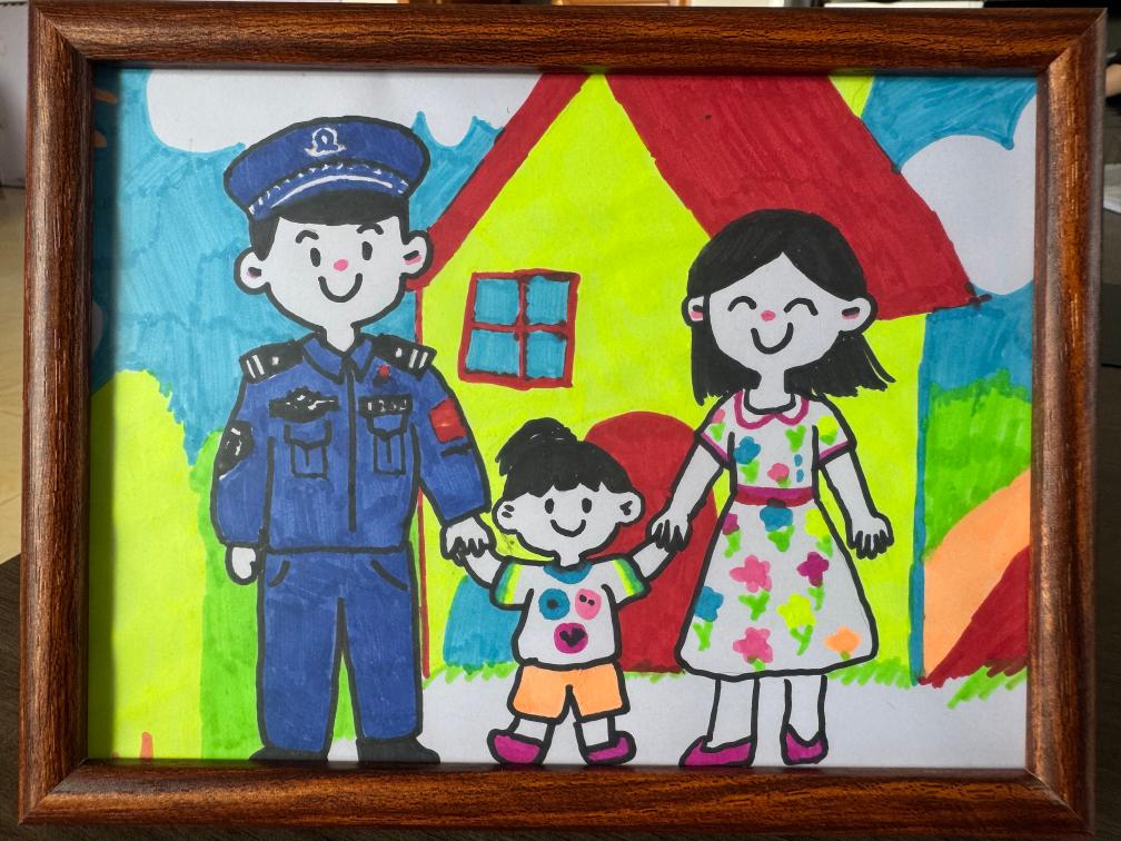 陈东将女儿画的水彩“全家福”放到了办公桌上。新华社发