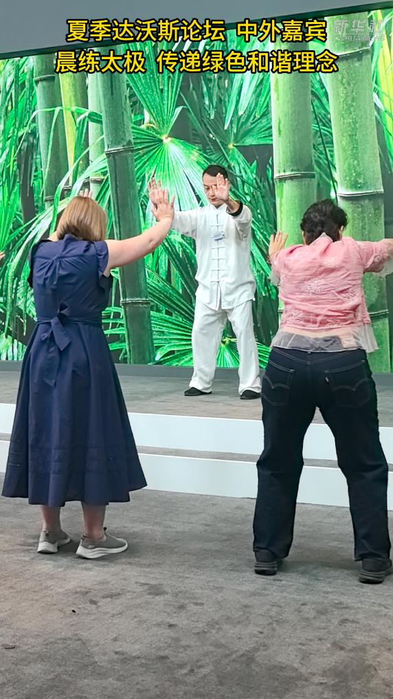 6月24日至26日,世界经济论坛第十六届新领军者年会(又称“夏季达沃斯论坛”)在天津举行。在国家会展中心(天津)的前瞻空间,中外嘉宾跟随武术老师晨练太极的活动环节,吸引人们驻足观看体验,不仅彰显着“天人合一”的中国智慧,也传递着“人与自然和谐共生”的“绿色办会”理念。