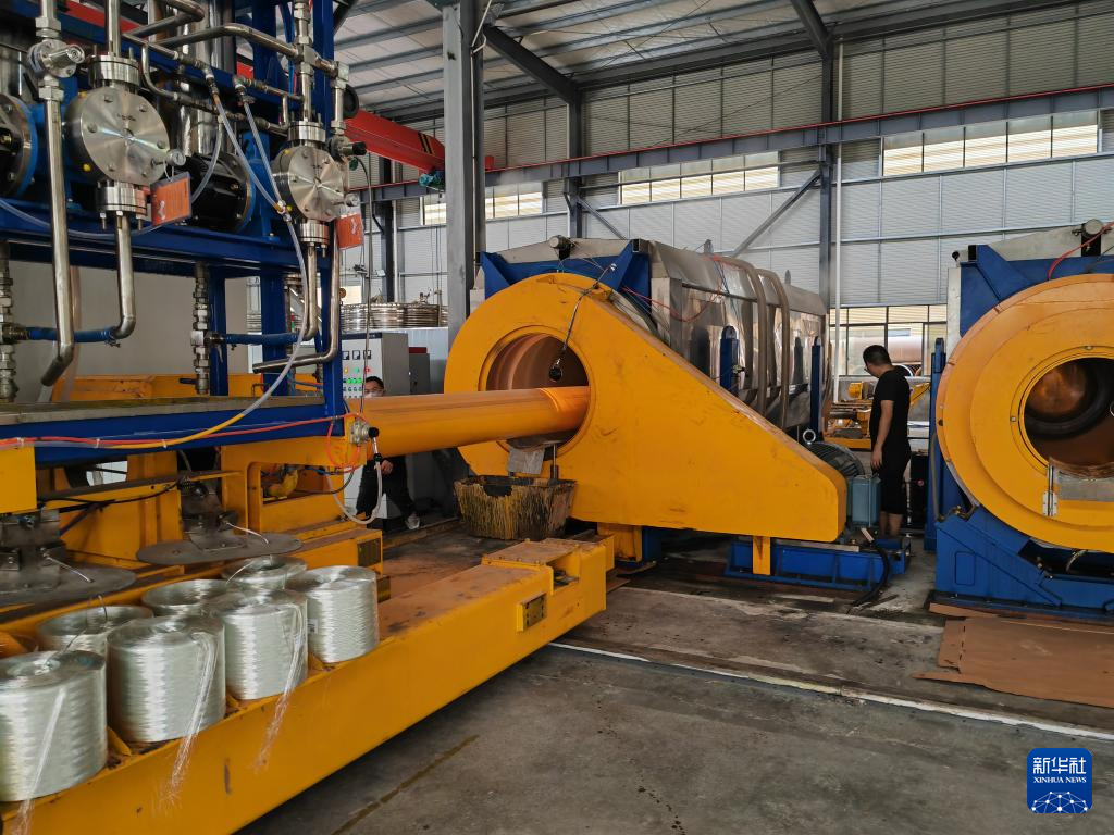 位于江西省上犹县工业园区的祺琳新材料有限公司,工厂车间在生产玻纤管材(6月18日摄)。 新华社记者 张东阳 摄