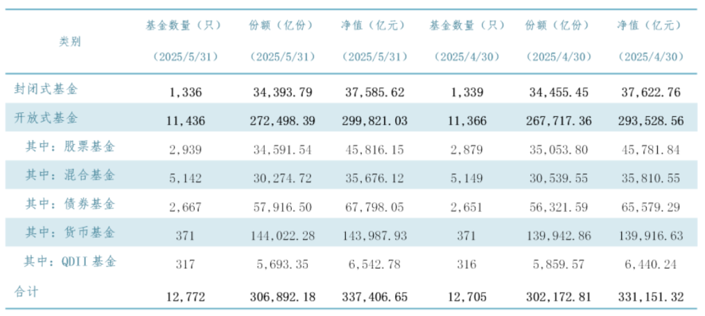 中国基金业协会最新发布的数据显示,截至2025年5月底,我国境内公募基金资产净值合计33.74万亿元。