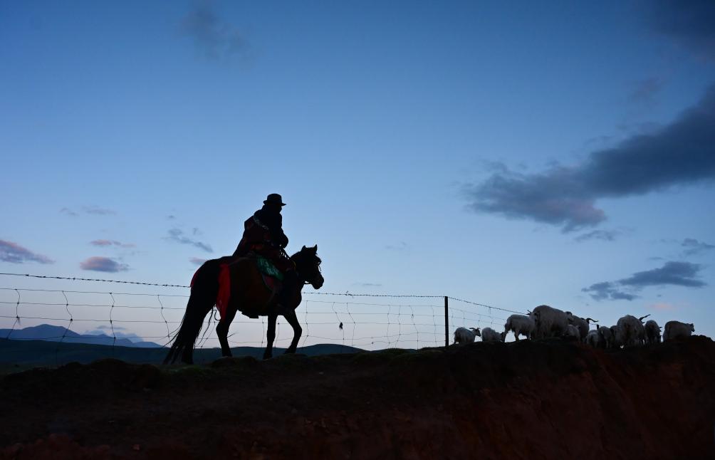 6月25日清晨,在转场路上的万卓。新华社记者 齐芷玥 摄