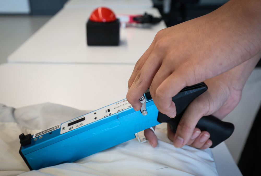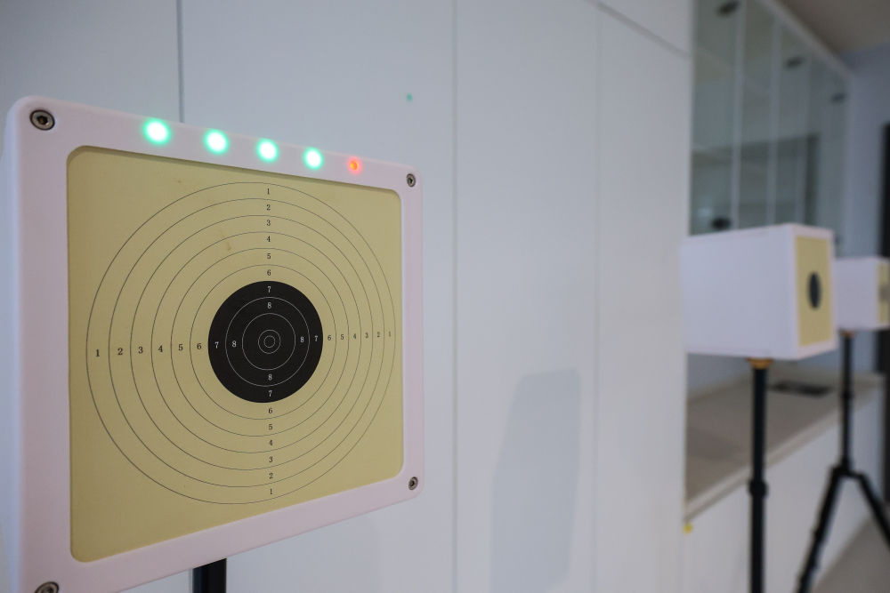 ↑图为在广州市中黄港澳子弟学校运动室,激光射击的电子靶显示出中靶信息(6月19日摄)。新华社记者 刘大伟 摄