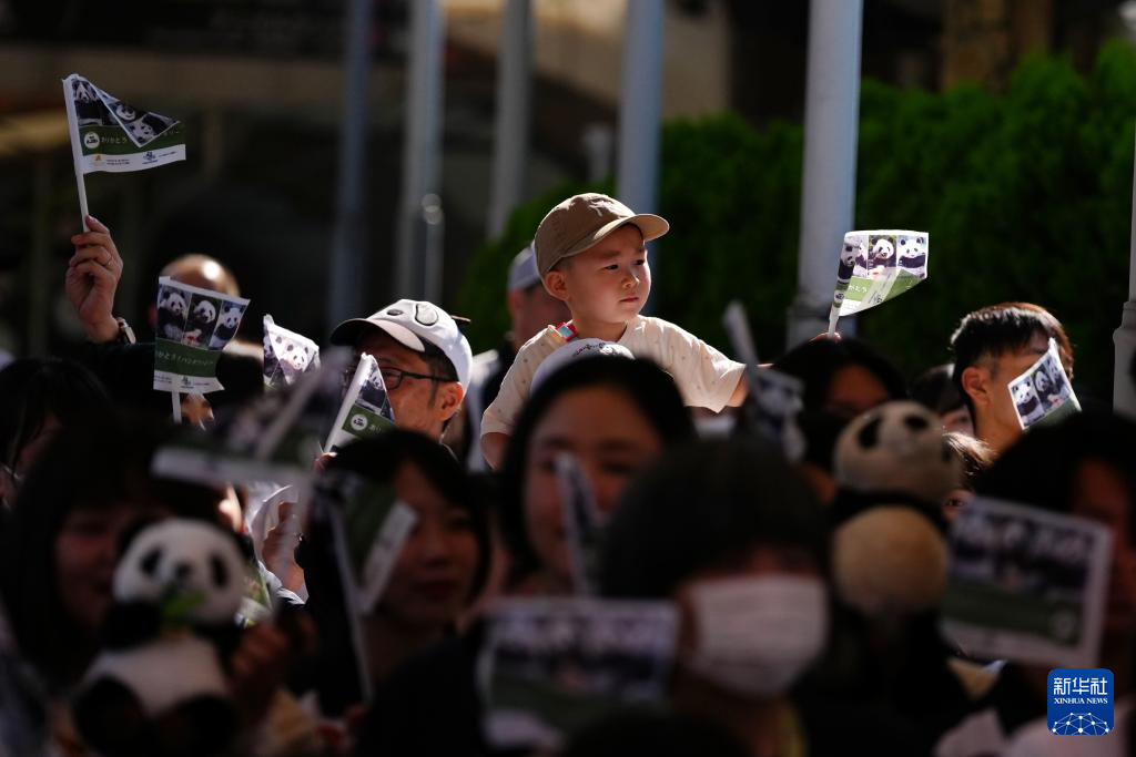 6月28日,当地民众在日本和歌山县冒险世界游乐园送别四只大熊猫。新华社记者 贾浩成 摄