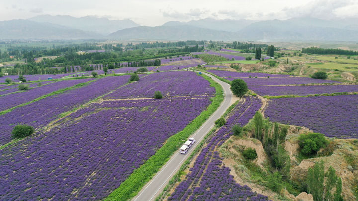 6月,新疆伊犁哈萨克自治州霍城县万亩薰衣草正值盛花期,芦草沟镇漫心忘忧谷景区游人如织。景区负责人李晓广介绍,2021年起周边打通21公里全域旅游道路,土路变柏油路,景区每天迎接近万名游客,还带动周边特色饮食、毡房民宿、骑马体验等业态蓬勃发展。
