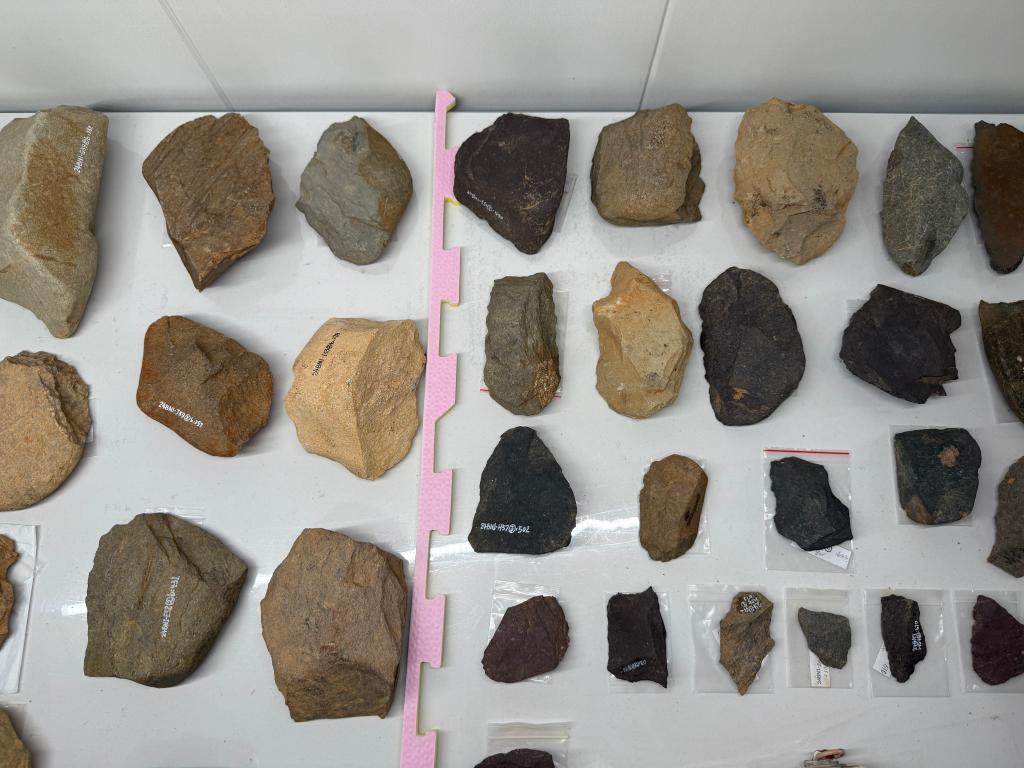 图为南或河遗址出土的部分石制品。新华社记者徐壮 摄