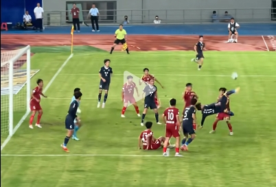 ↑泰州队虽然主场1:2不敌徐州队,但这脚“倒挂金钩”石破天惊。图片来自视频截图