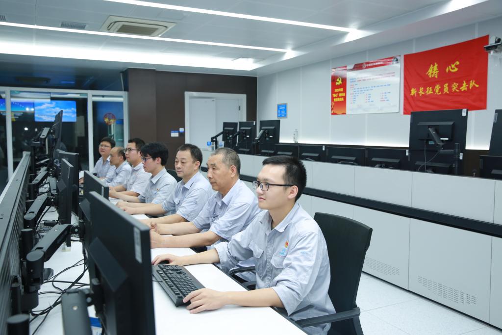 2023年6月8日,绵阳城郊试验基地,中国航发涡轮院试验人员正在操作台前进行重点型号长久试车。(中国航空发动机集团供图)