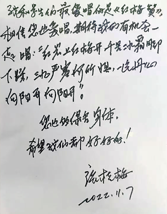 张桂梅于2022年11月7日写给路生梅的信件(节选)。新华社发
