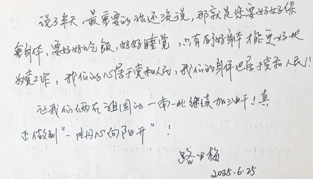 张桂梅于2025年6月28日写给路生梅的信件(节选)。新华社发。