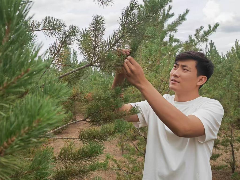 2017年,在爷爷的带领下,石健阳正式投身植绿事业。“过去沙害严重,老一辈治沙人最迫切的是要定住风沙,让地面先绿起来,所以当时的树种主要是生长快的杨树。”石健阳说,“几十年过去,杨树林老化严重,出现大面积枯死的情况。我们现在陆续对老化的林地进行树种更换,补种四季常青、生命周期更长的樟子松,目前已经补种了5万亩。”