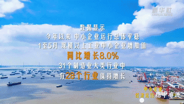 数据显示,今年以来,中小企业运行总体平稳。1至5月,规模以上工业中小企业增加值同比增长8.0%,31个制造业大类行业中有28个行业保持增长。