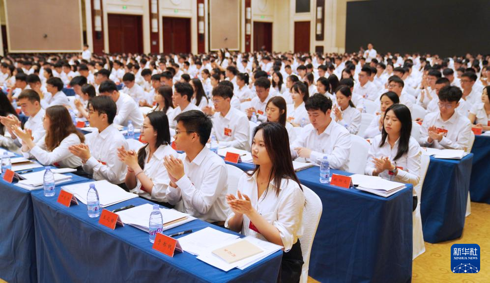 7月3日,中华全国学生联合会第二十八次代表大会完成各项议程,在北京闭幕。新华社发(田嘉硕摄)