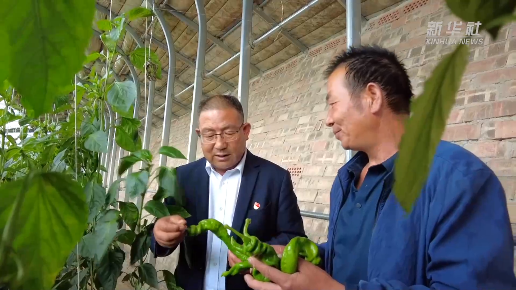 在甘肃省武威市古浪县富民新村,养殖与种植产业相辅相成,共同发展。日光温室种植区内,辣椒、人参果、香瓜等经济作物郁郁葱葱,长势喜人。