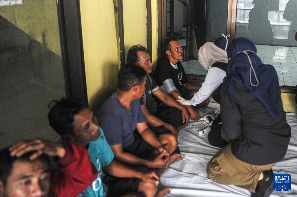 7月3日,在印尼东爪哇省的吉打邦港,工作人员检查幸存者的情况。新华社发(萨赫兰摄)