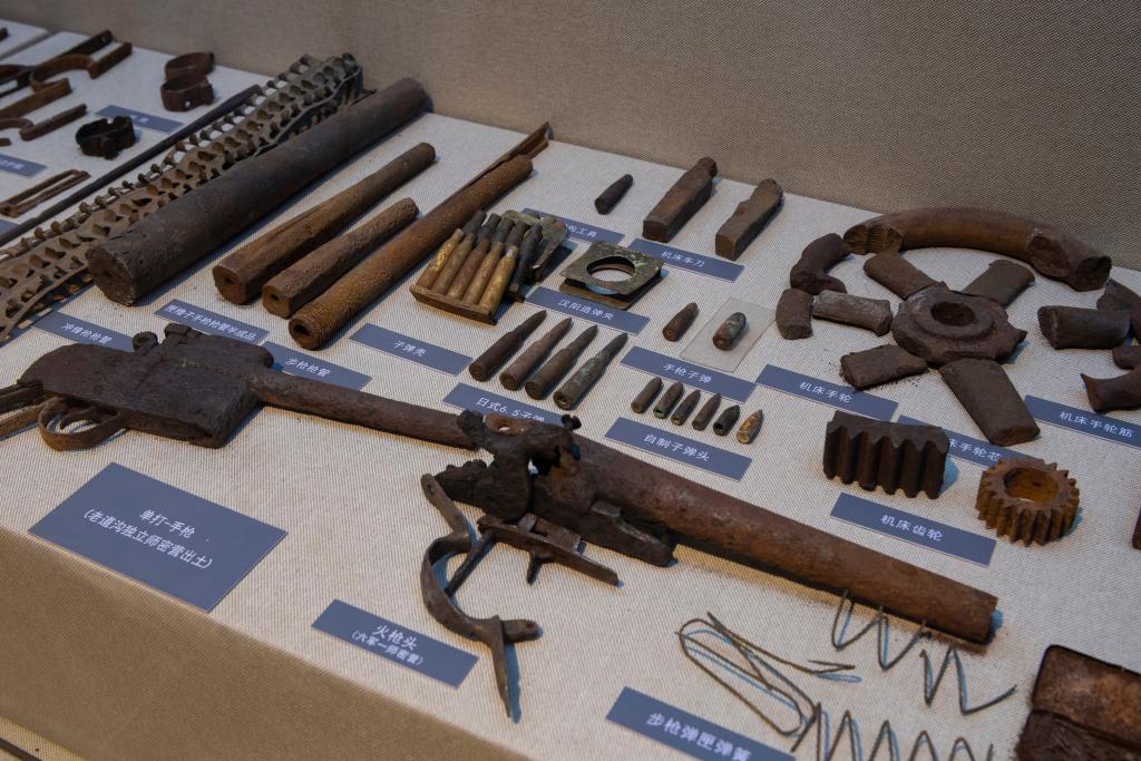 记者在抗联体验馆二层的七星山地区抗联展示区看到了机床齿轮、步枪枪管、药瓶、缝纫机头等各类抗联文物,斑驳锈迹诉说着岁月沧桑。