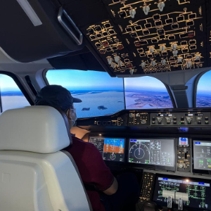 图为7月3日在北京坊数字综合体,观众在1:1的C919模拟驾驶舱内体验飞行驾驶。新华社记者 阳娜 摄
