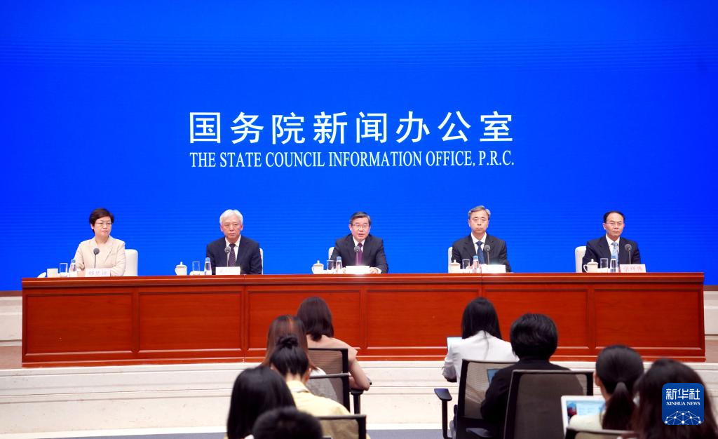 7月4日,国务院新闻办公室在北京举行新闻发布会,水利部副部长陈敏、水利部总规划师吴文庆、国家发展改革委农村经济司负责人关锡璠、水利部规划计划司司长张祥伟介绍全面推进江河保护治理有关情况,并答记者问。新华社记者 潘旭 摄