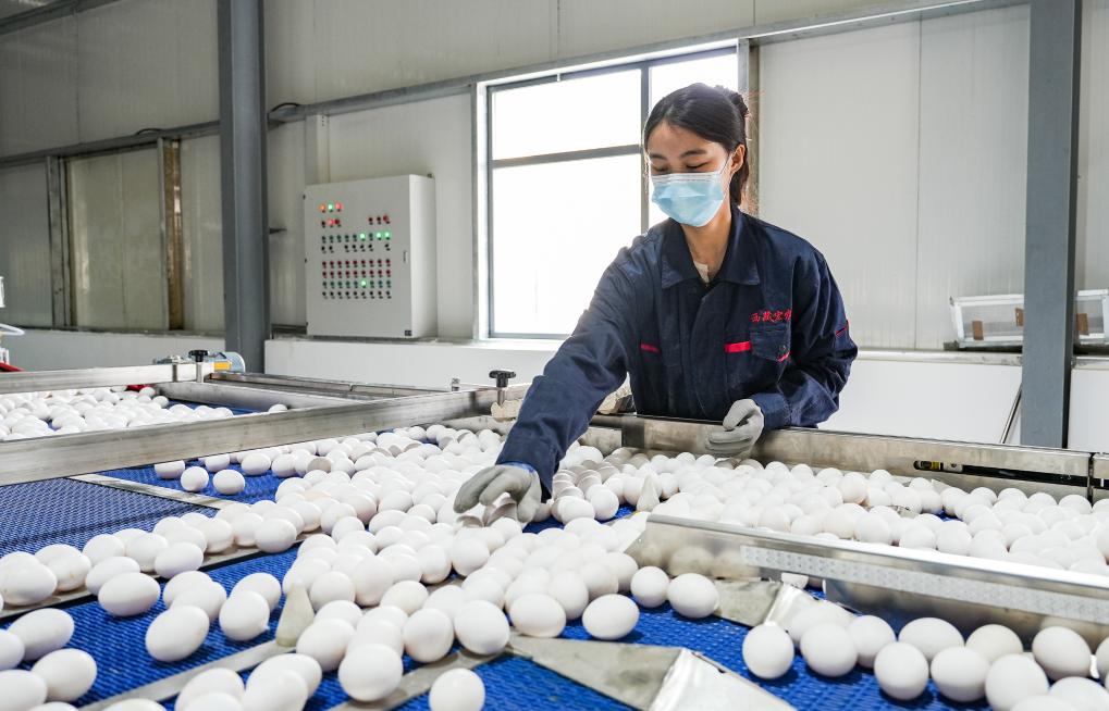7月4日,工作人员在西藏宏农农业发展有限公司蛋鸡养殖场内筛选鸡蛋。新华社记者 蒋梦辰 摄