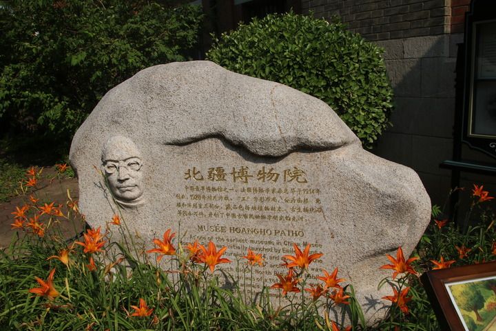从天津外国语大学西北门往里走,摸着一栋栋古老房屋的根骨,绕过层层叠叠的绿树栏影,踱过左侧一片空地,会看见一座低矮的三层棕红色小洋楼。“Musée Hoangho Paiho”,高处的楼顶写着这样的法文,草丛里的石刻介绍写着它的中文名字:北疆博物院。