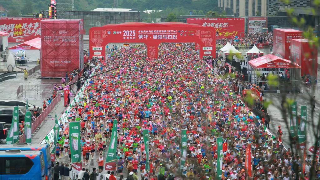 6月29日,2025贵州·镇宁黄果树马拉松鸣枪开跑,这场半马赛事共12000人参赛。在此两周前,2025多彩贵州马拉松超级联赛(第三站)蒙牛·贵阳马拉松更是吸引了26个国家和地区的35000名跑者齐聚林城,感受“爽爽贵阳”的独特魅力。