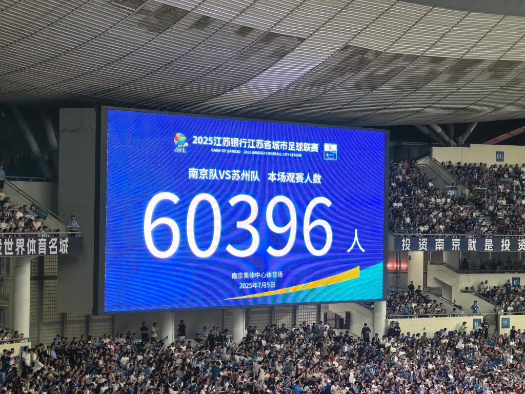 南京队主场对阵苏州队,南京奥体中心涌进60396名观众,打破上轮苏州在主场创造的43617人纪录