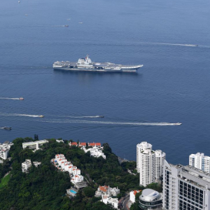 7月3日,中国海军山东舰航母编队抵达香港。这是山东舰行进在香港水域。新华社记者 陈铎 摄