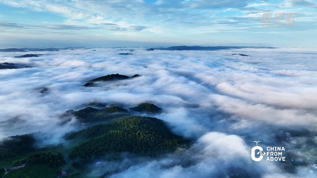 近日,湖南省邵阳市隆回县三阁司镇朝京山区域出现罕见大规模云海景观。置身山顶,翻滚的云海升腾而起,仅余部分峰顶显露,宛如漂浮在白色海洋上的岛屿。云层涌动不息,时而如轻纱漫卷,时而似波涛奔涌,景象蔚为壮观。