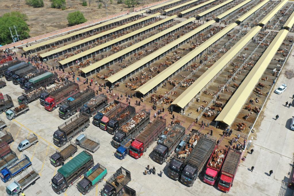 图为科右中旗鸿安大庙牛羊交易市场。新华社发(葛玉彬 摄)