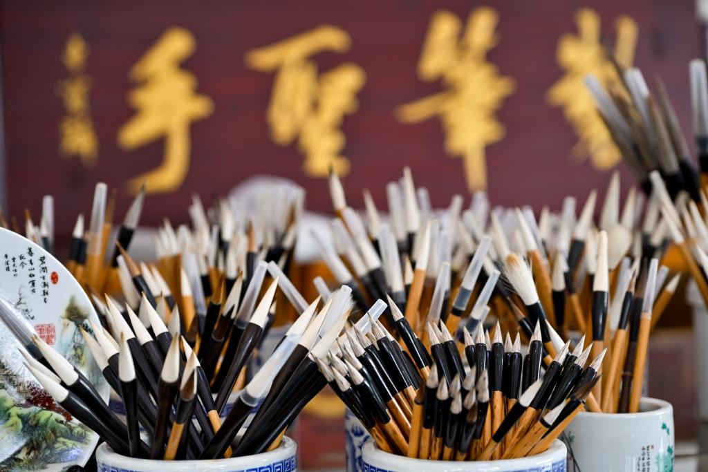 这是江西省南昌市进贤县文港镇一家笔庄内摆放的毛笔成品(7月8日摄)。