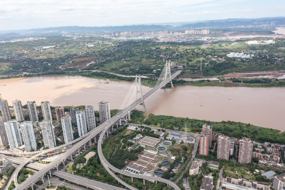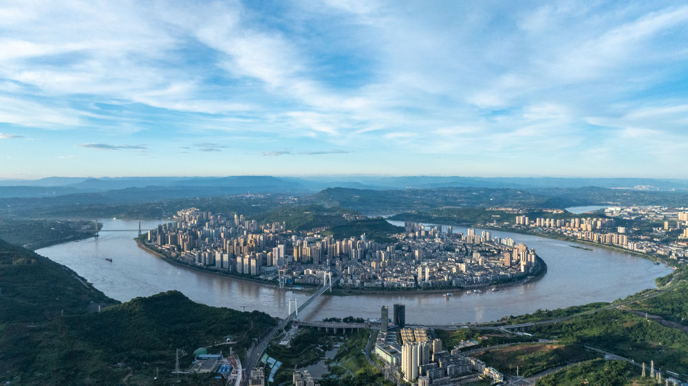 在几江长江大桥北岸,记者看到城市楼群沿着山坡而建,远远望去,仿佛是从崖壁上自然生长出的一片垂直森林,充满了生机与活力。