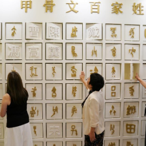 在展览现场,“甲骨文百家姓”互动体验及汉字文创等创意区域,吸引不少市民打卡体验。