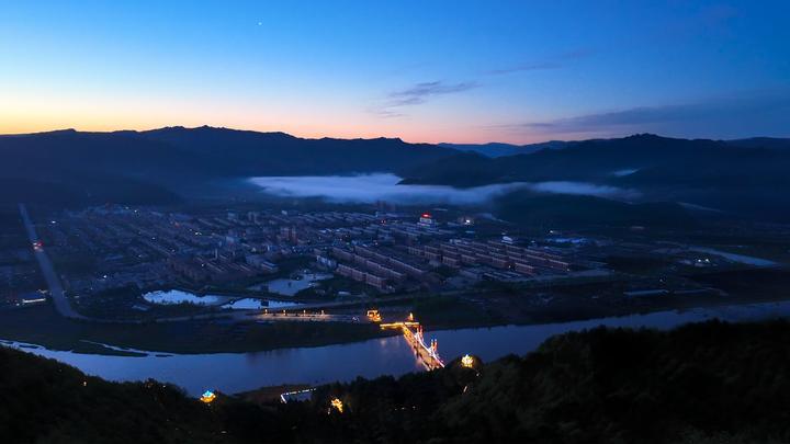 5月21日,金祖峰上拍摄的夜色下金山屯。张启明摄