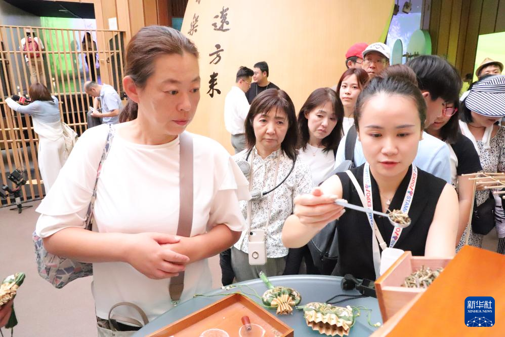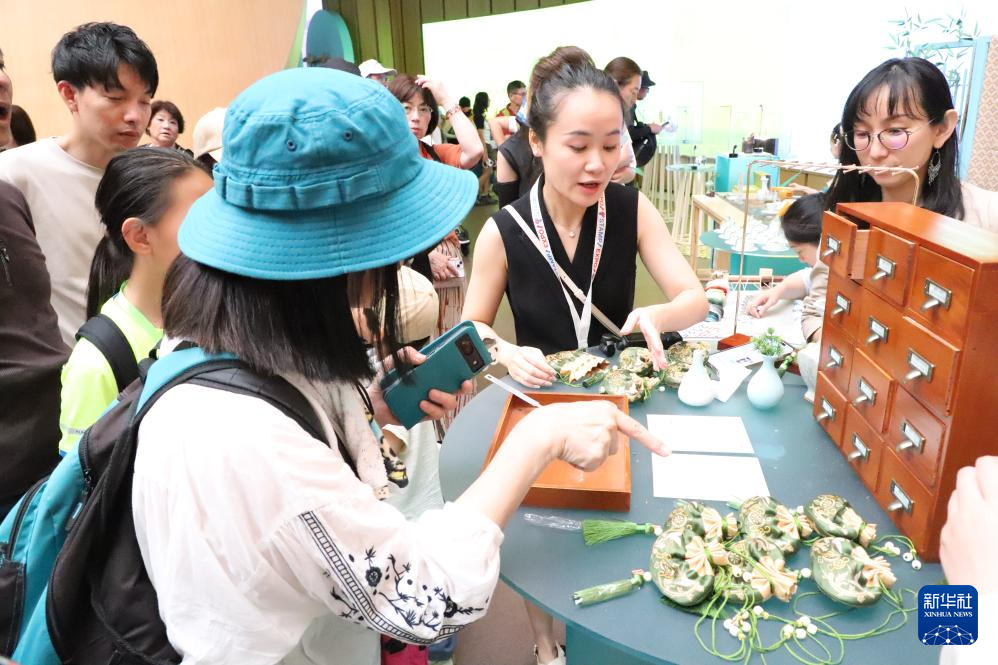 当天,中国馆内设有多个展示和体验区域。大师精品区汇集多位中国国家级、省级手工艺大师的代表作品;江南生活体验区展示了知名品牌的创新产品;互动体验区提供宋代点茶、杭绣技艺展示、中药香囊制作等活动,吸引众多观众参与。