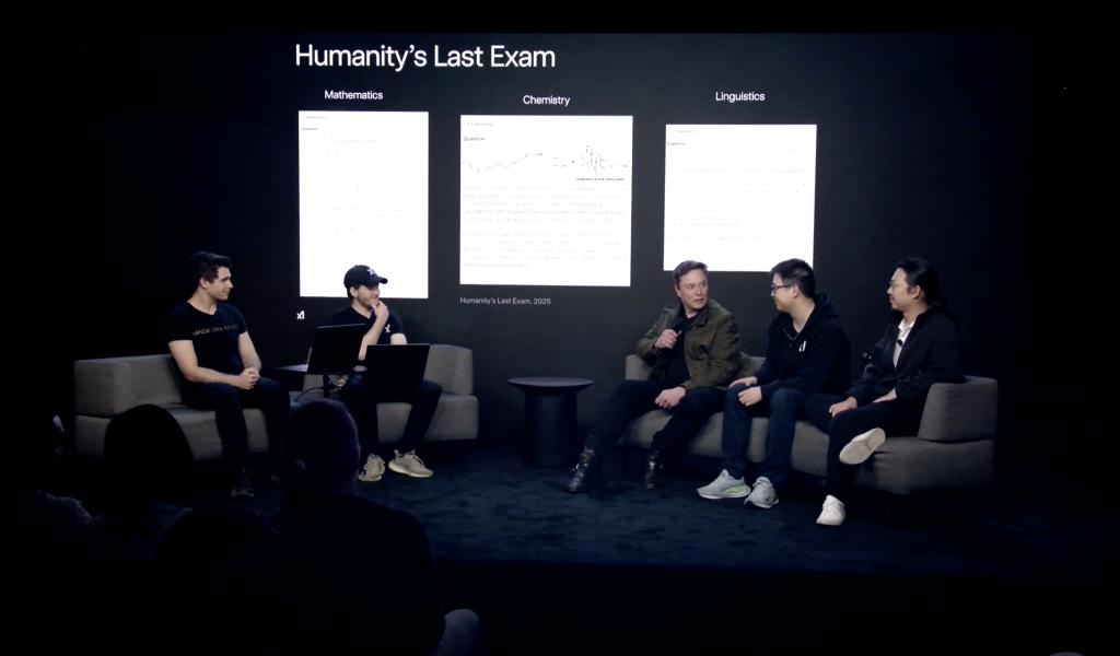 7月10日,马斯克率领研发人员发布“Grok4”的视频截图