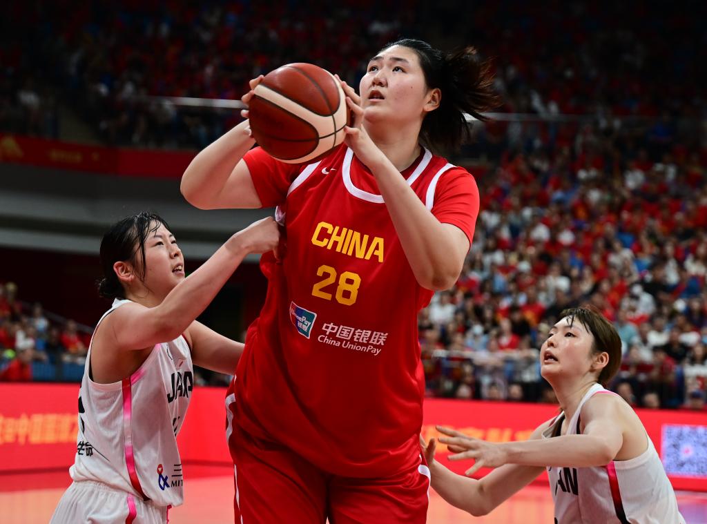 6月20日,中国队球员张子宇(右三)在中国与日本的热身赛中。新华社记者 周牧 摄