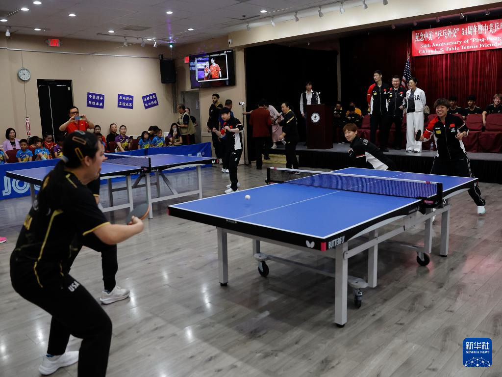 这是7月13日在美国内华达州拉斯维加斯拍摄的纪念中美“乒乓外交”54周年暨中美乒乓球友好交流活动现场。新华社发(邱晨摄)