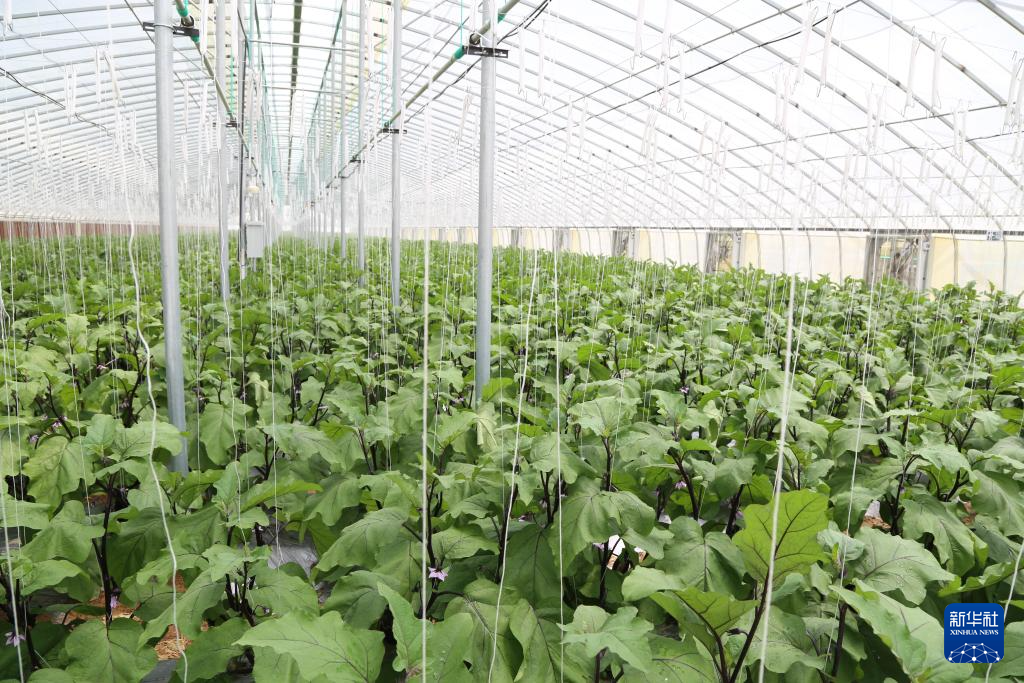 这是7月4日在阿联酋艾因地区阿联酋绿色硅谷产业园拍摄的茄子种植区。 新华社记者 温新年 摄