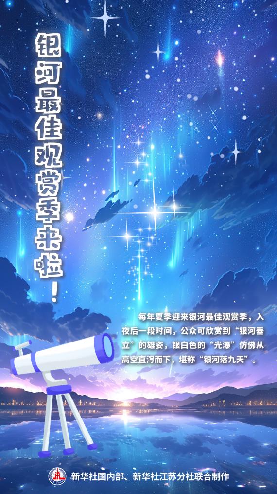 新华社南京7月15日电(记者王珏玢、朱筱)每年夏季迎来银河最佳观赏季,入夜后一段时间,公众可欣赏到“银河垂立”的雄姿,银白色的“光瀑”仿佛从高空直泻而下,堪称“银河落九天”。