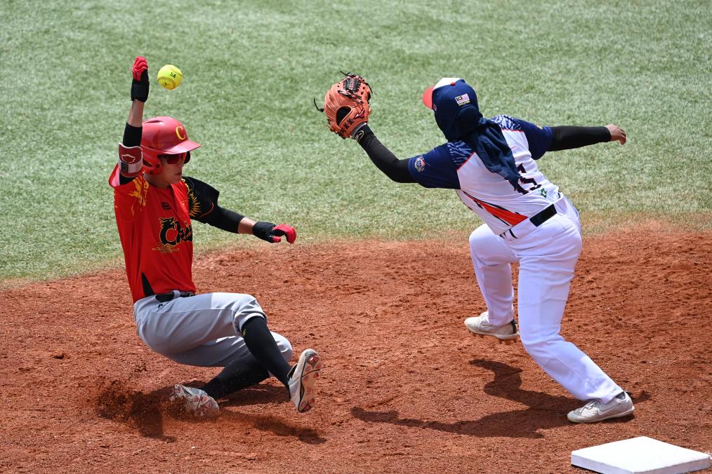 面对马来西亚队,中国队首局在两名选手出局的情况下,由谢佳欣击出安打,送任敏和颜思语回到本垒,取得2:0领先。第二局,中国队投手柴燚楠给马来西亚队击球员送出本场第四次“三振出局”,随后,中国队又在两名队员出局的情况下,由奚凯琳击出两分安打,中国队手握4分领先优势。