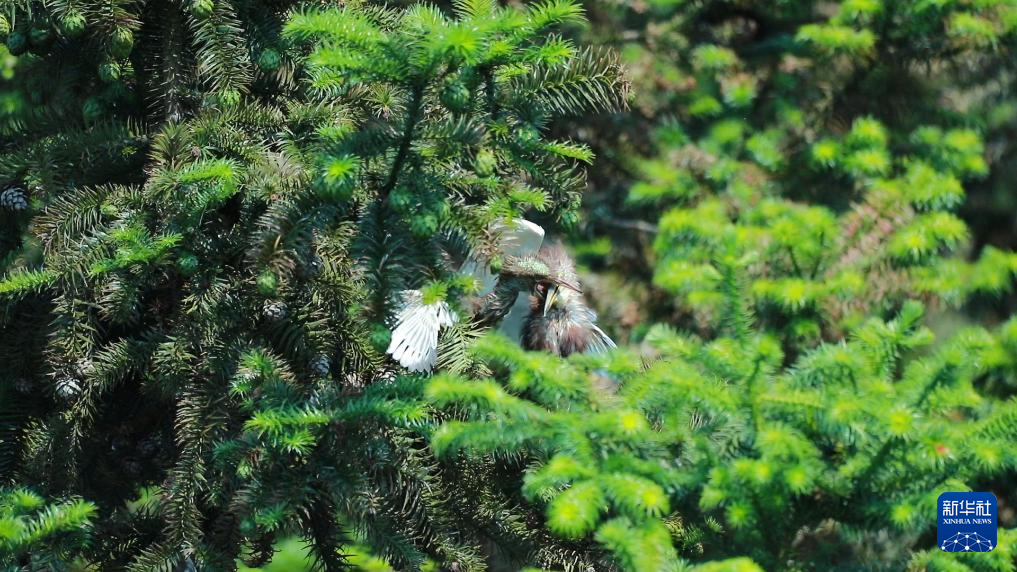 随着雏鸟长大,羽翼渐丰,它们开始在亲鸟的示范带领下练习振翅,在树枝间尝试短距离飞行。然而,雏鸟学飞,跌落下来是常见的事。为此,当地村干部每天组织人员巡山,发现受伤的鸟或者掉下来的小鸟,及时向当地林业部门反映,进行救护。“现在越来越多的鹭鸟在这里筑巢育雏,每到繁殖季节,我们会加派人手,守护候鸟安全。”雷家岭村村干部雷辉说。