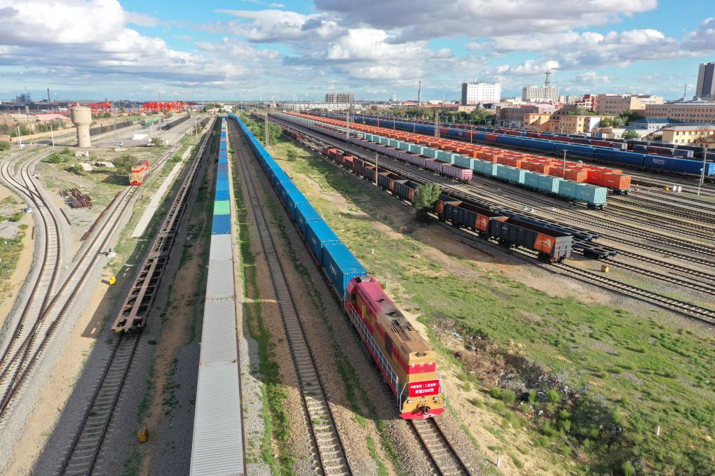 一列中欧班列缓缓驶出二连浩特铁路口岸。(中国铁路呼和浩特局集团有限公司供图)