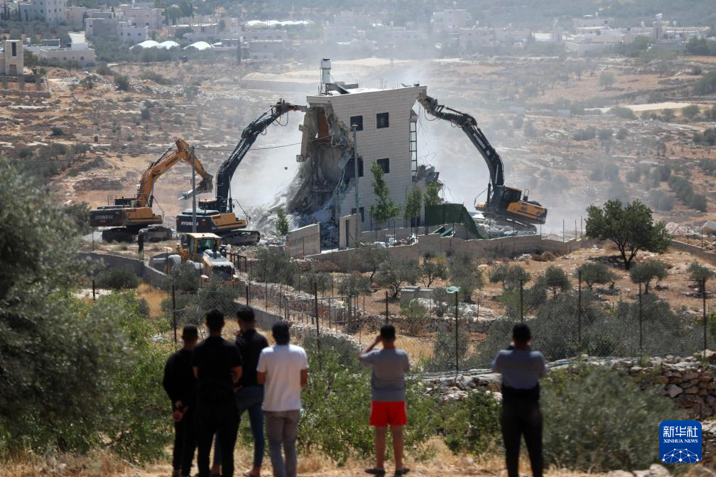 7月14日,在约旦河西岸的伯利恒地区,以方人员驾驶工程车辆拆除巴勒斯坦人的房屋。 新华社发(马蒙·沃兹沃兹摄)