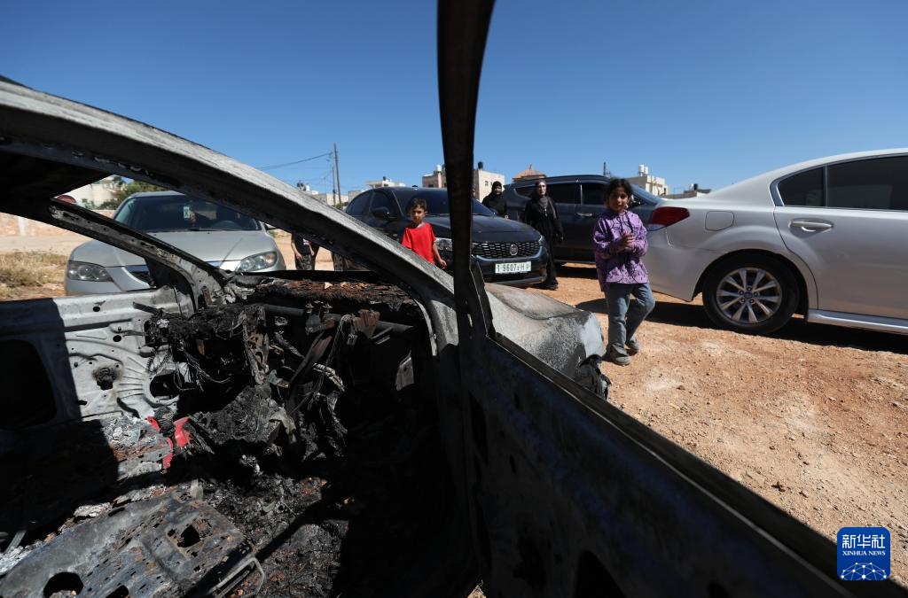 这是6月26日在约旦河西岸拉姆安拉以东的马利克村拍摄的损毁汽车。 新华社发(艾曼·诺巴尼摄)