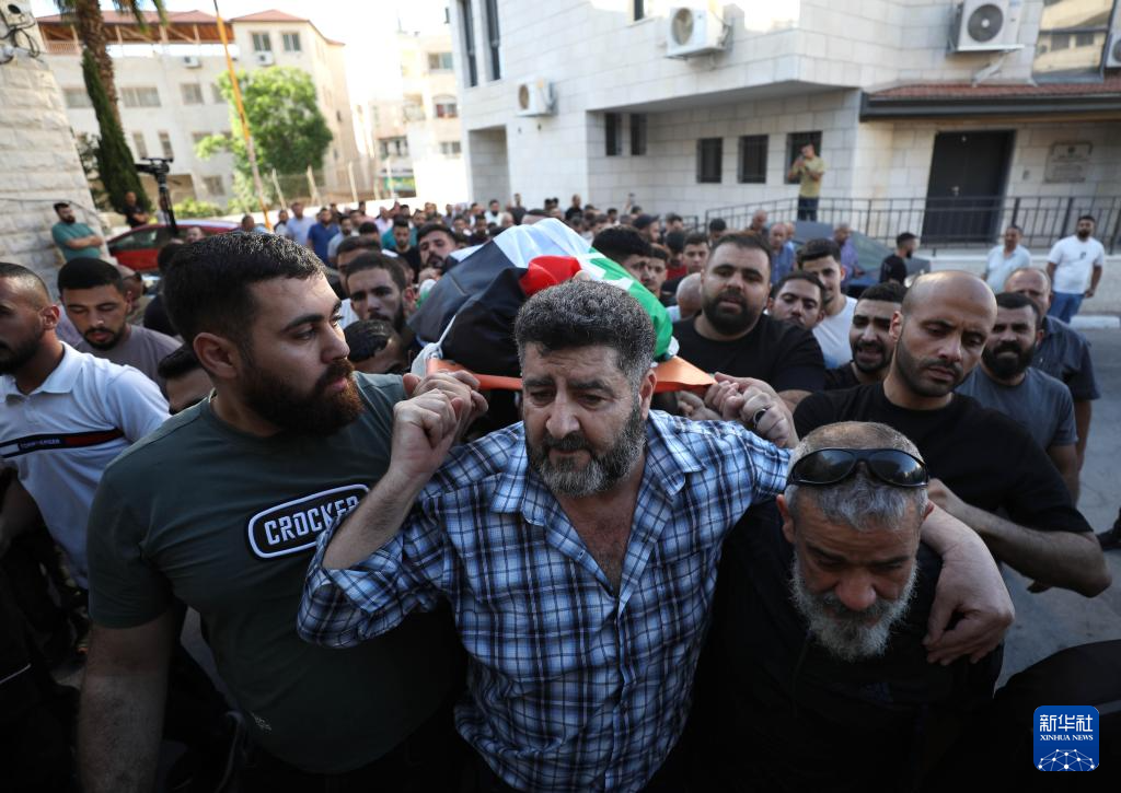 7月6日,巴勒斯坦人在约旦河西岸北部的纳布卢斯地区为以军袭击中的遇难者举行葬礼。 新华社发(艾曼·诺巴尼摄)