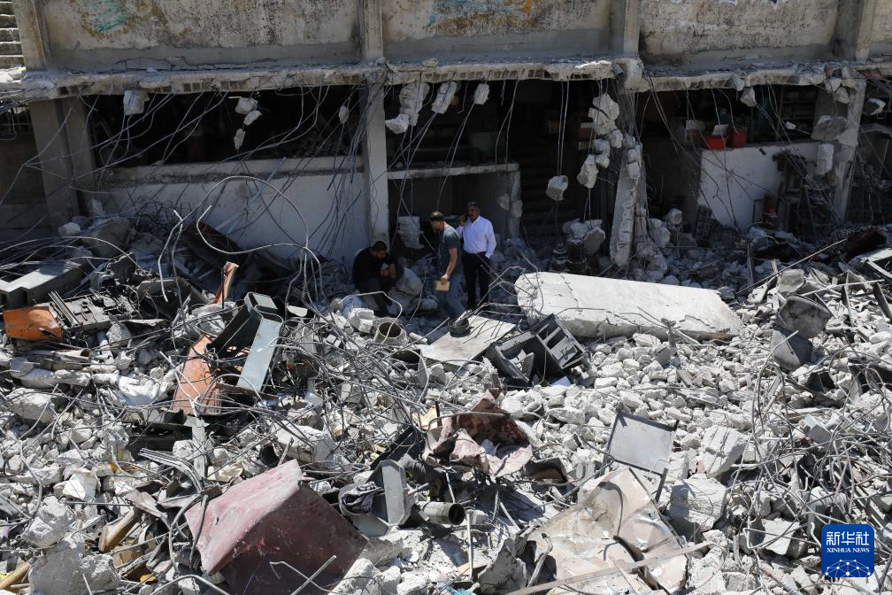 7月3日,人们在约旦河西岸北部的纳布卢斯地区查看遭以方拆毁的房屋。 新华社发(尼达尔·艾仕塔耶摄)