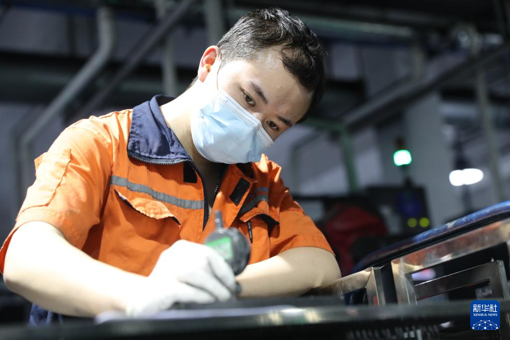 7月16日,一名工作人员在长兴县煤山镇浙江华熔科技股份有限公司车间内工作。