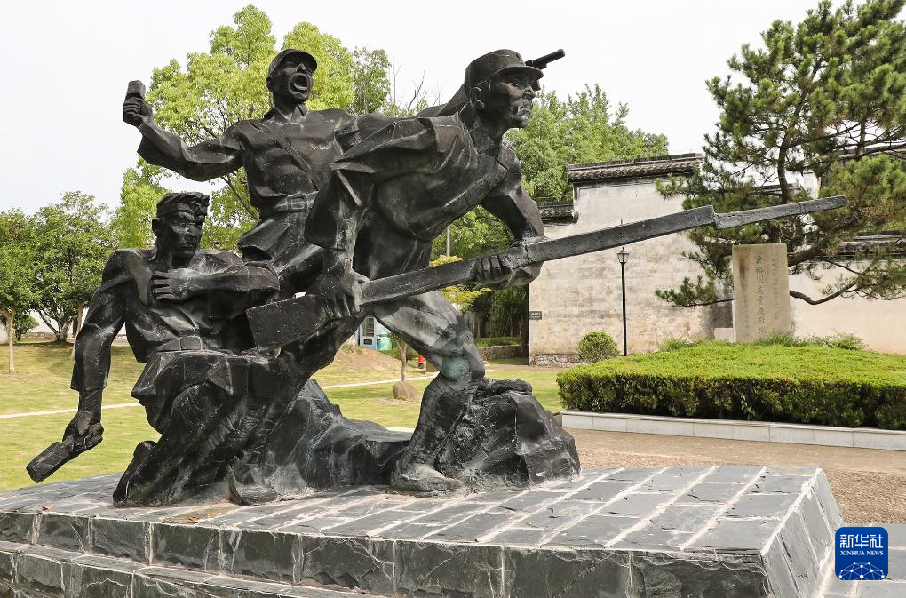 7月16日在长兴县煤山镇新四军苏浙军区纪念馆拍摄的《新四军战士英勇作战》群雕。