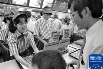 1992年,就读于北京联合大学的一名女学生暑假期间在北京一家快餐店打工。新华社记者 张燕辉 摄