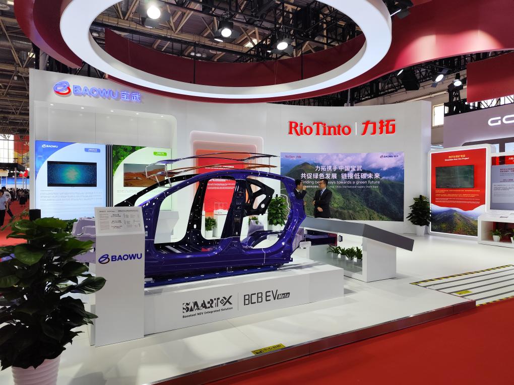 宝钢在链博会上展示的第五代平台化、集成化纯电动白车身。新华社记者 金地 摄